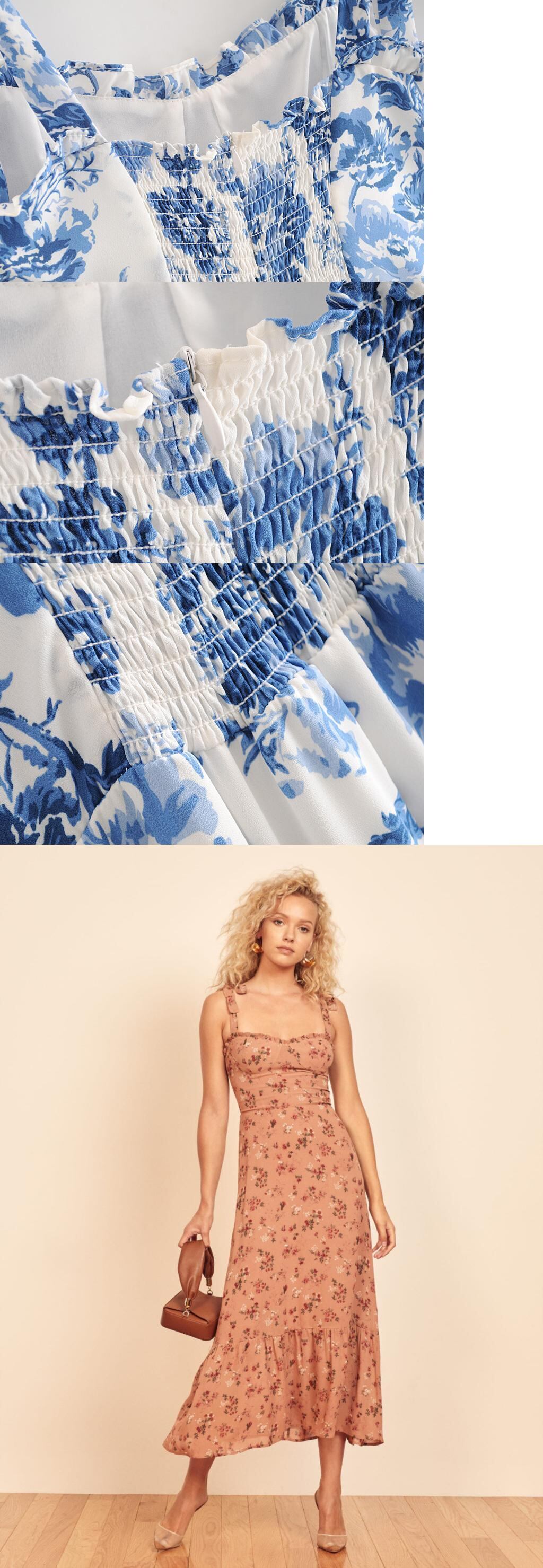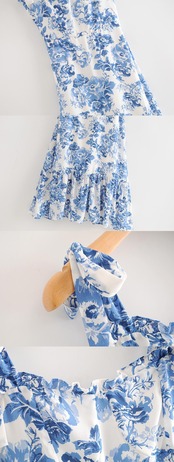 バック弾性サマードレスブルーフローラルプリントドレス女性のセクシーなスパゲッティストラップネクタイシフォンフリルミディドレス エラスティック 伸縮 夏物 花柄 bel64590997685 | aliel