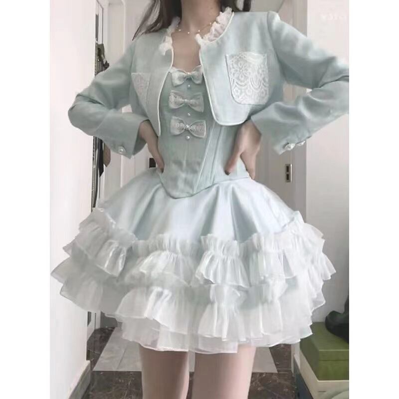 スーツ 春物 ショートジャケット チュチュドレス 2点セット 甘い 優しい気質 ツーピーススーツ ケーキドレス 大人ガーリー スウィート キュート カジュアル スプリング パニエ ペチコート bel94402762271 | aliel