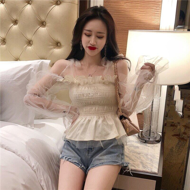 Bella Philosophy スイート スラッシュネック パフスリーブ オフショルダー パッチワーク マッシュ 夏秋 トップス シャツ 大人ガーリー スウィート キュート カジュアル サマー 夏物 オータム 秋物 | aliel