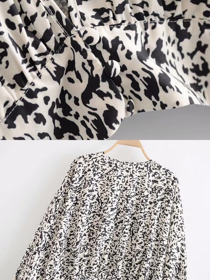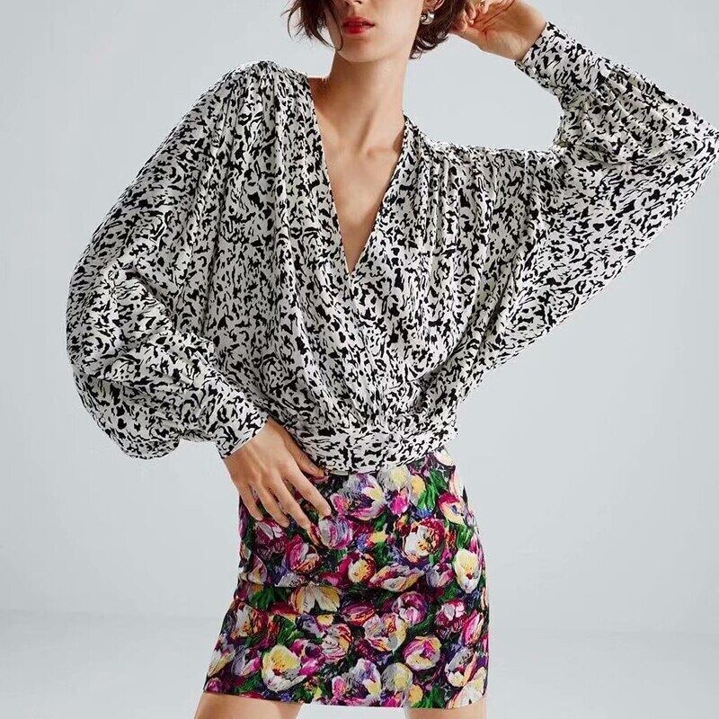 Bella Philosophy ヴィンテージ V ネック アニマル プリント オーバーサイズ ブラウス ロング パフ スリーブ シャツ カジュアル ルーズ シック トップス セクシー blusas Vネック ビンテージ | aliel