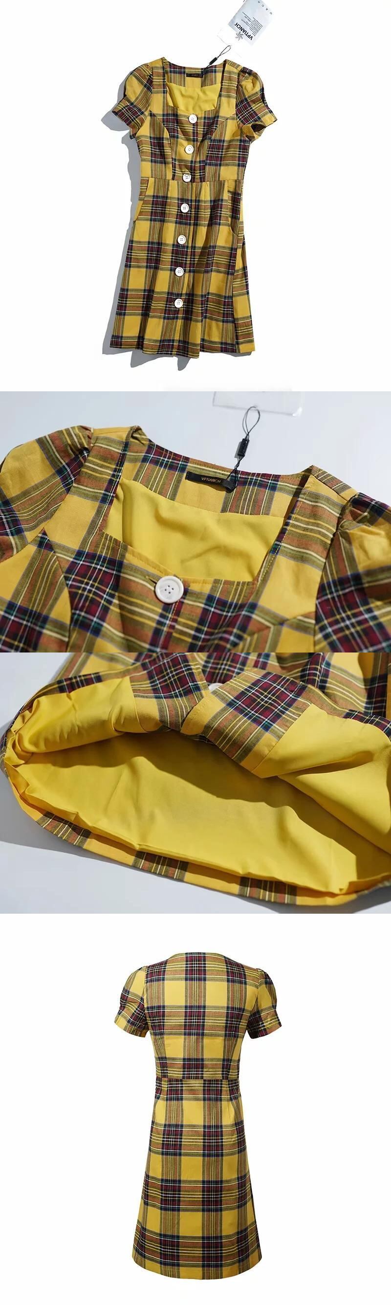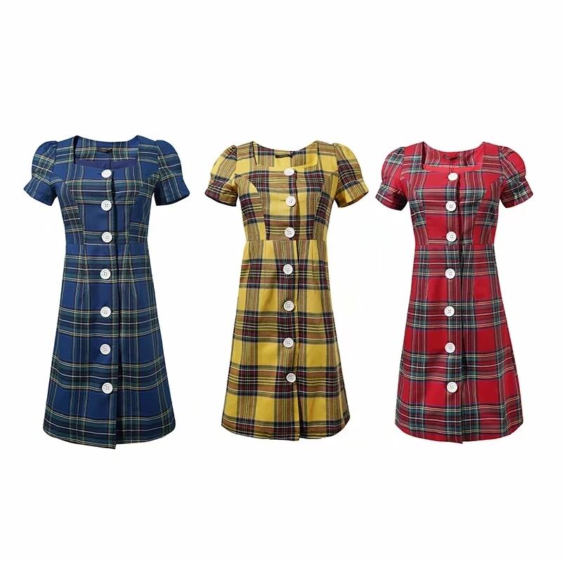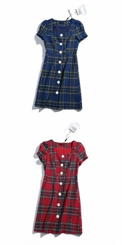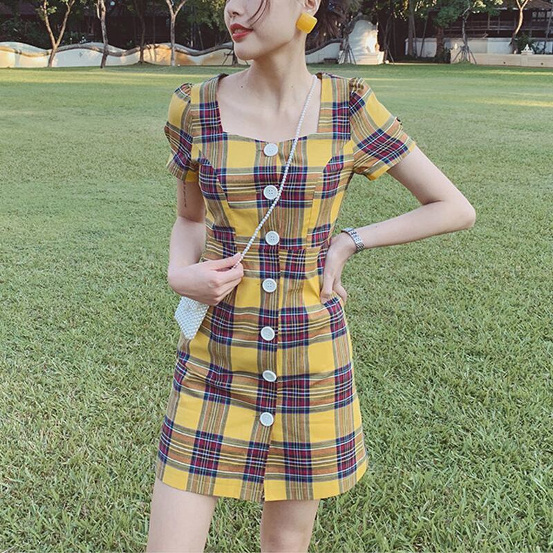 Bella Philosophy 夏 半袖 ミニドレス チェック柄 スクエアカラー ボヘミアンドレス ストリート レディ フレンチ Vestidos ショート ハーフスリーブ サマー 夏物 スクウェア | aliel