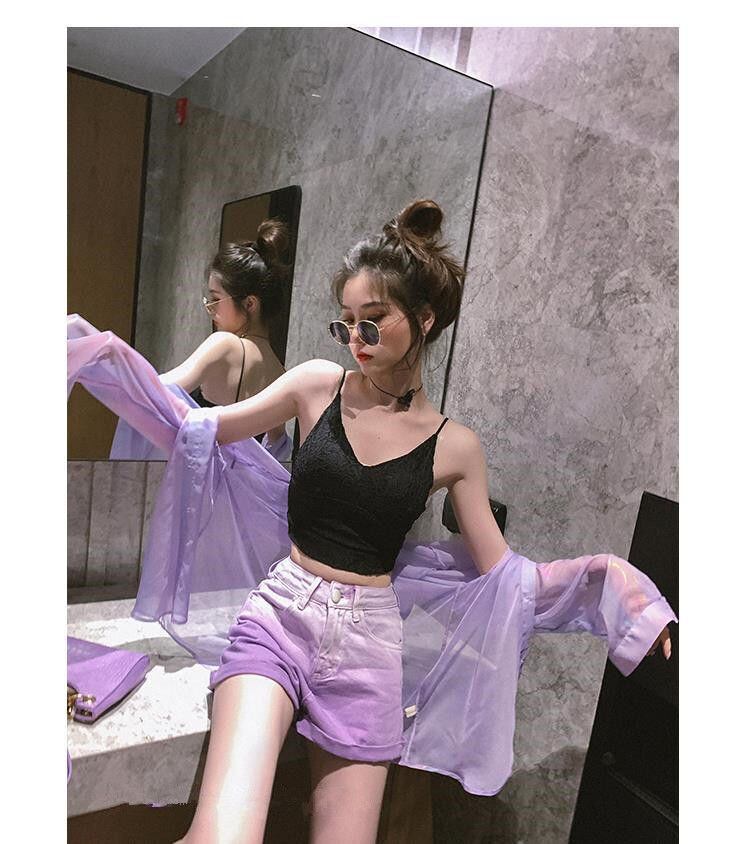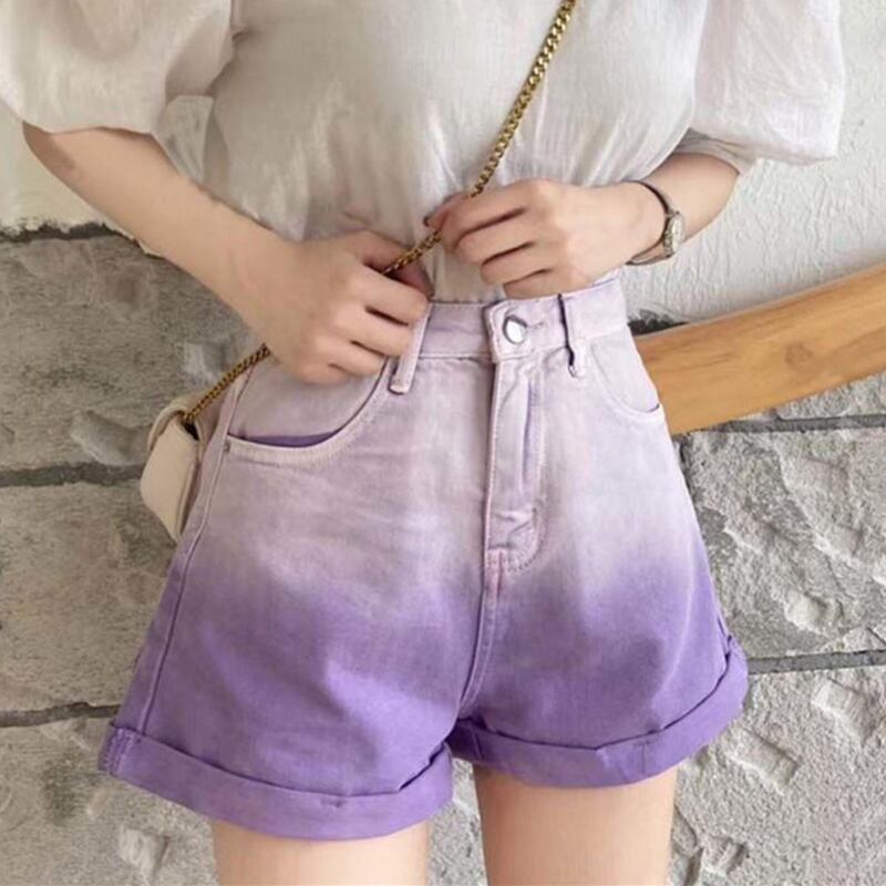 ウエスト グラデーション パープル デニム ショーツ ヴィンテージ 夏 ストリート ルーズ ワイドレッグ パンツ ファッション ボトムス サマー 夏物 ブルマー ワイドパンツ ビンテージ | aliel