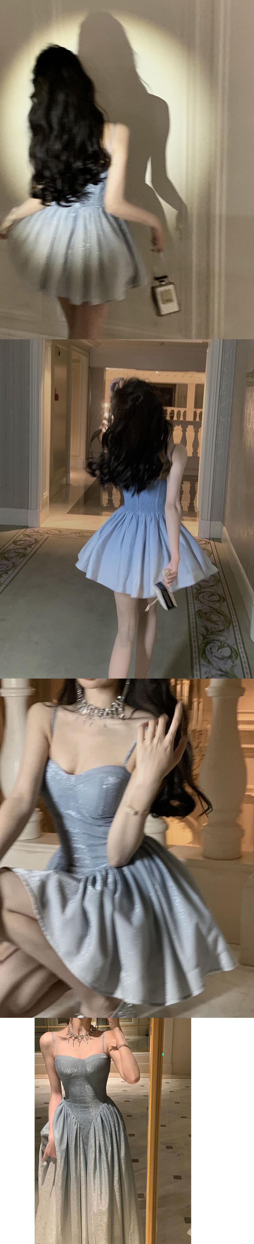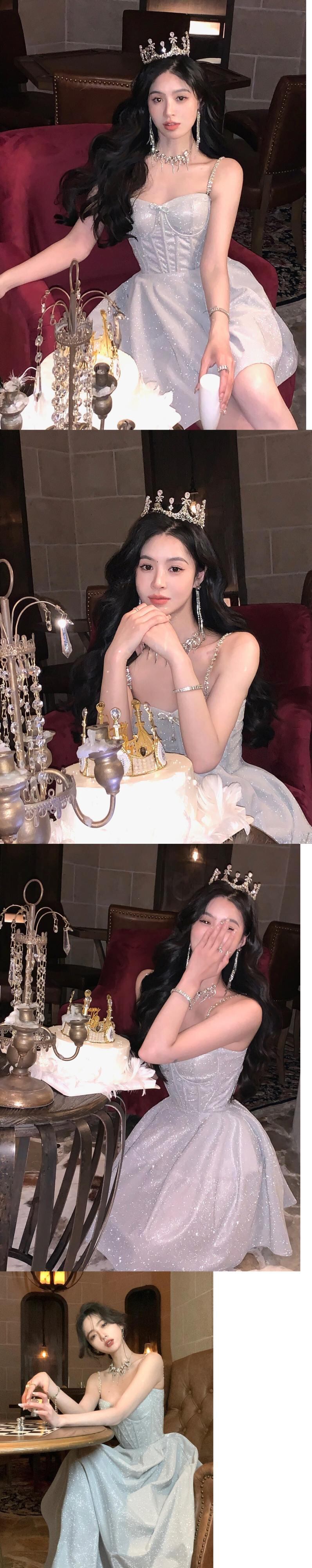 ロング高級イブニングウエディングドレスパーティー結婚式イブニングシャイニー Vestidos 恋人 A ラインブルー卒業ストラップドレス 大人ガーリー スウィート キュート カジュアル Aライン | aliel