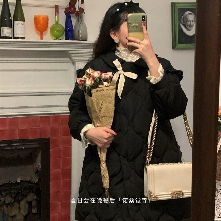 レトロガーリー蝶結び綿パッド入りジャケット冬甘くて年齢を軽減する小さ厚手ミッドレングスパッド入りジャケット リボン コットン 大人ガーリー スウィート キュート カジュアル ウィンター 冬物 | aliel