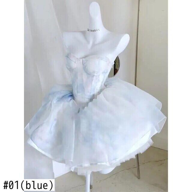 夏ノースリーブ甘い A ラインミニドレスピンクパープルパッチワークパフドレス誕生日パーティードレスウェディングドレス 大人ガーリー スウィート キュート カジュアル サマー 夏物 Aライン | aliel