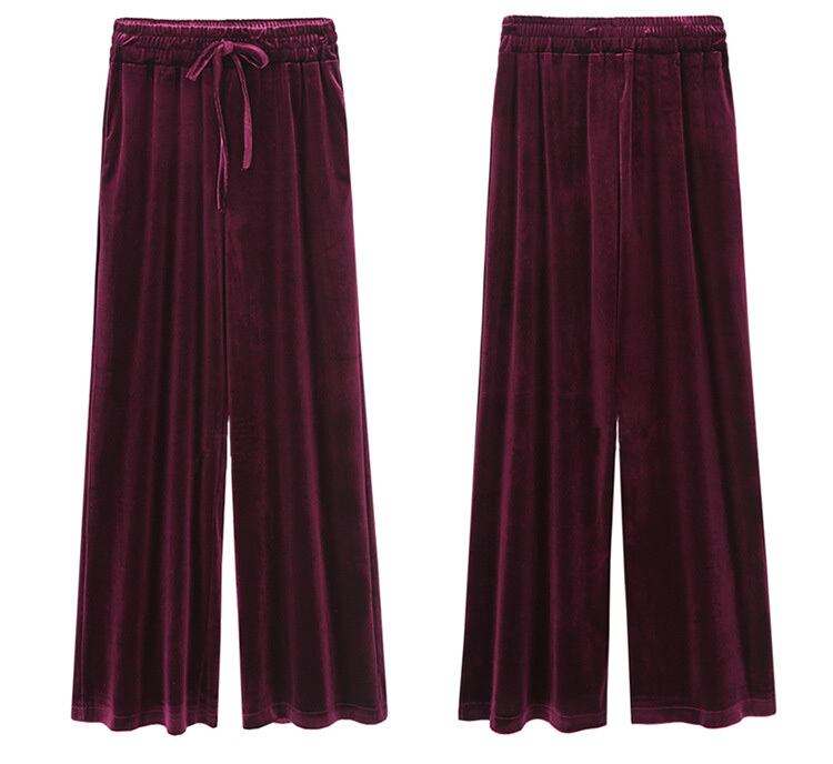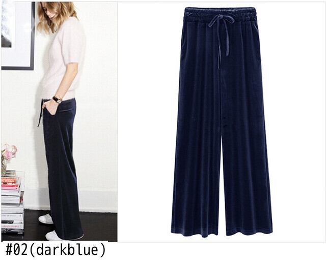 Bella Philosophy ベルベット ワイドレッグパンツ 秋パンツ ゆったり 大きいサイズ ハイウエストパンツ 薄手 伸縮性パンツ カジュアルパンツ ハイウェスト エラスティック 大きめサイズ オータム 秋物 ワイドパンツ | aliel