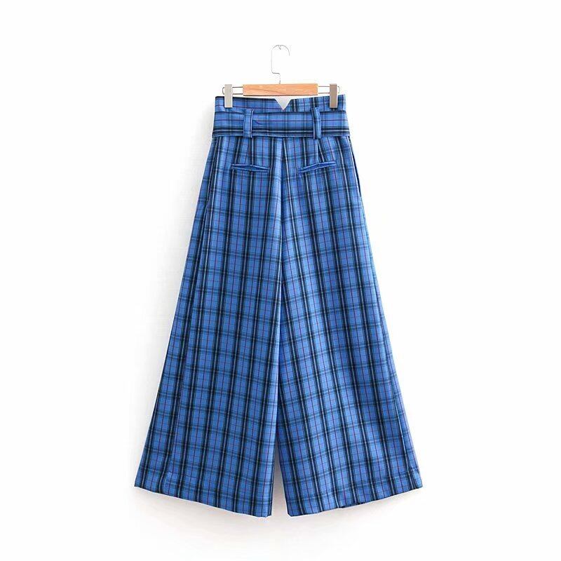 Bella Philosophy 秋チェック柄ちょう結びサッシュワイドレッグパンツファッションハイウエストポケットロングルーズズボンビジネスパンツ ハイウェスト リボン オータム 秋物 ワイドパンツ | aliel