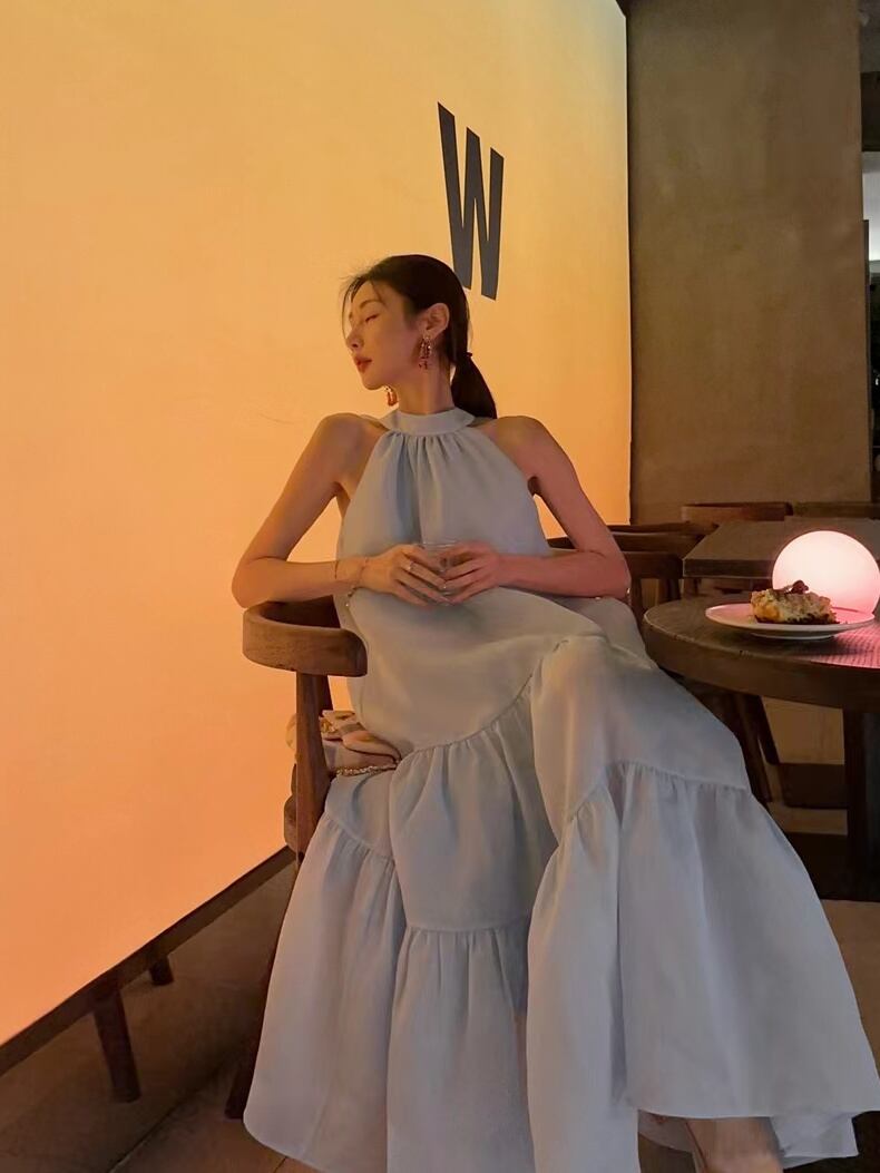 夏ホルターリボンブルーロングドレスかわいいvestidosデフィエスタウエディングドレス платье корейский стиль veatidoエレガント 大人ガーリー サマー 夏物 | aliel