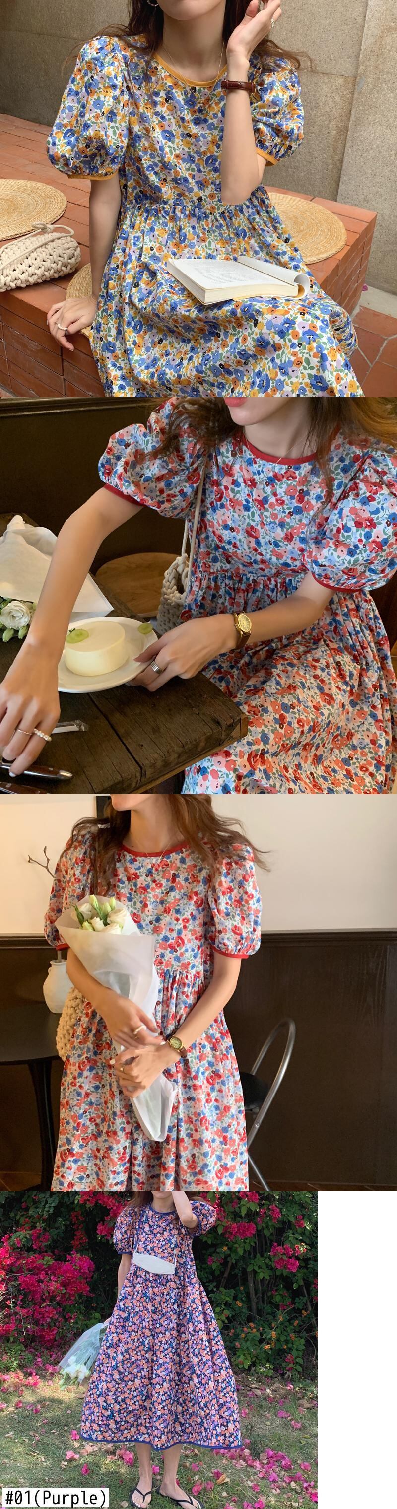 花柄ロングドレス夏半袖 O ネック A ラインドレス甘い Vestidos ショート ハーフスリーブ プリント 大人ガーリー スウィート キュート カジュアル サマー 夏物 Oネック Aライン | aliel