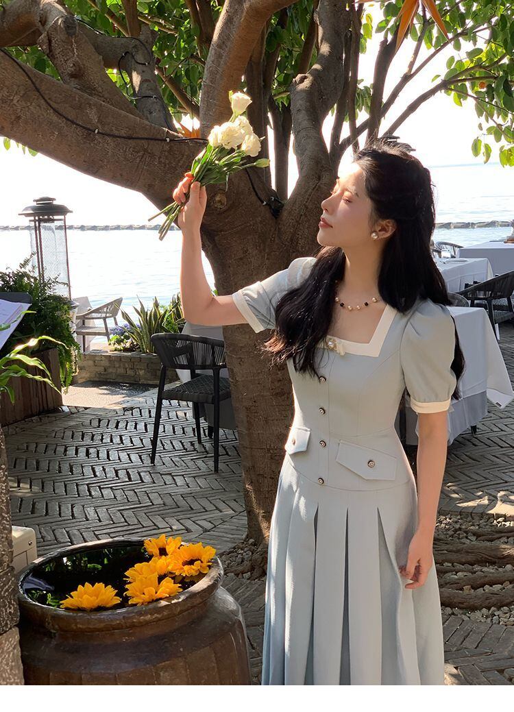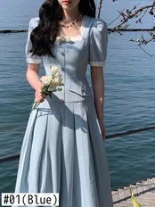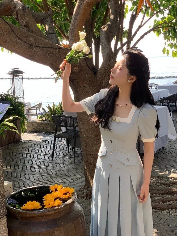 ドレスフレンチスタイルサマーエンパイアドレスオフィスレディホリデーウエディングドレス 夏物 会社 学校 通勤や通学にも