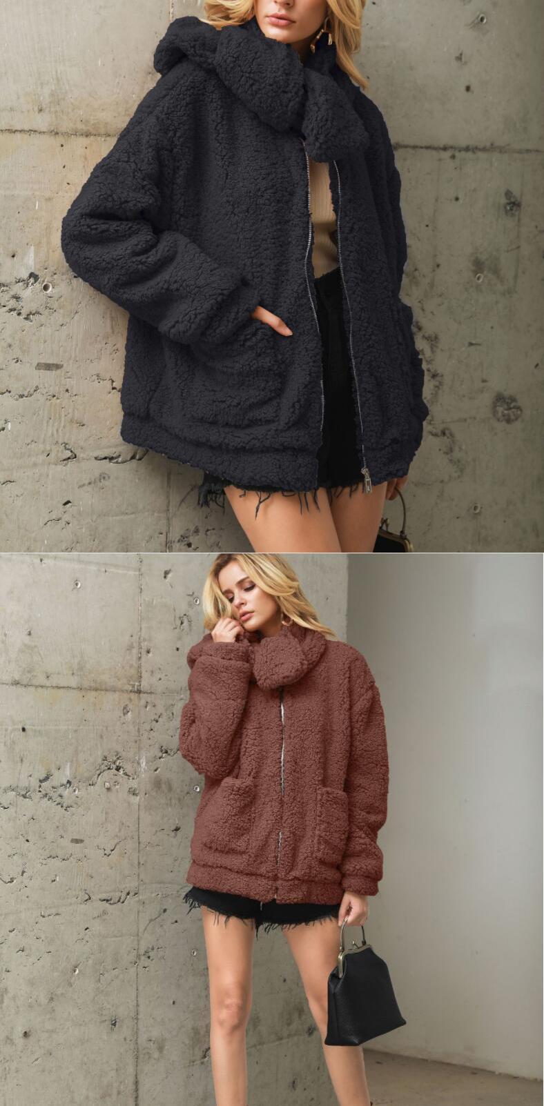 Bella 哲学冬暖かいスカーフコートフェイクファールーズコートジャケットストリートウェアレディテディベア生き抜く ウィンター 冬物