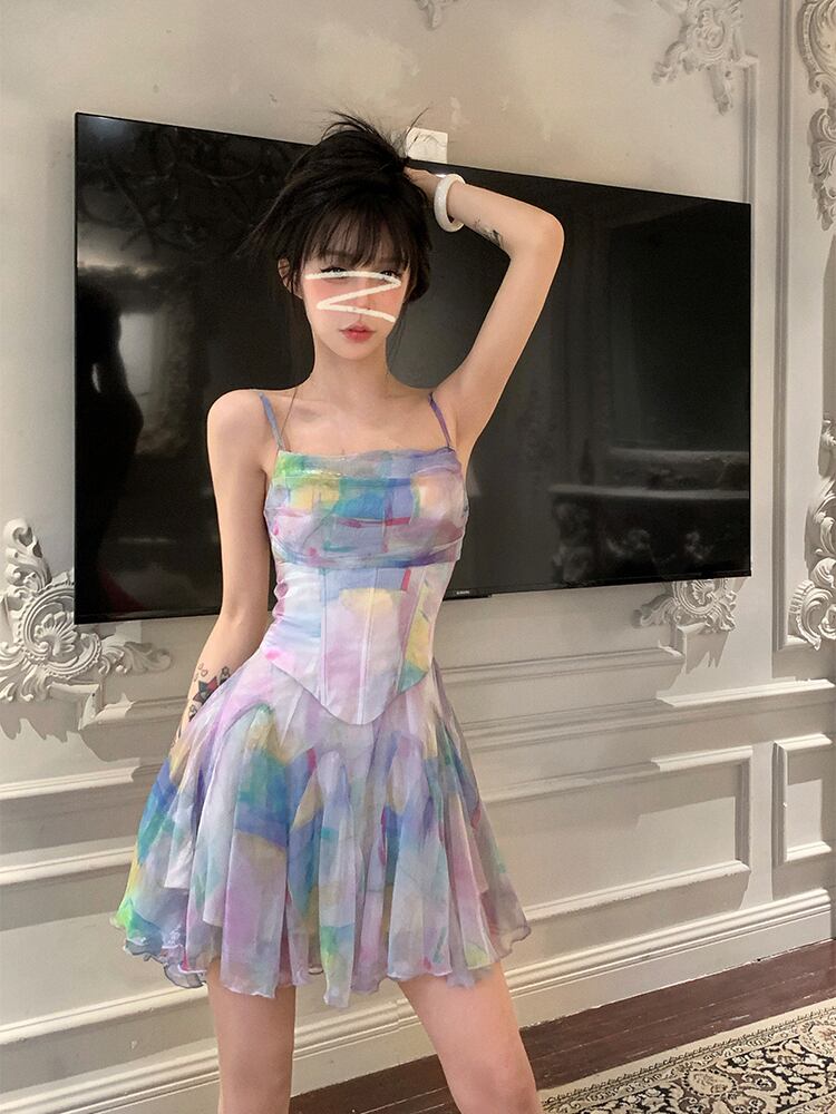 ストラップ Y2k ミニドレスビーチショートパーティードレスオフィスレディスリムスイートドレスノースリーブ夏 大人ガーリー スウィート キュート カジュアル サマー 夏物 会社 学校 通勤や通学にも | aliel