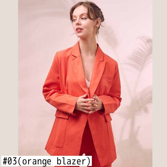 色:01(オレンジショーツ),02(オレンジパンツ),03(オレンジブレザー),04(ブルーショーツ),05(ブルーパンツ),06(ブルーブレザー),07(白ショートパンツ),08(ホワイトパンツ),09(白ブレザー)