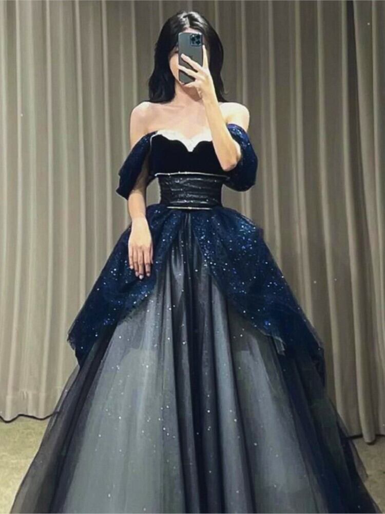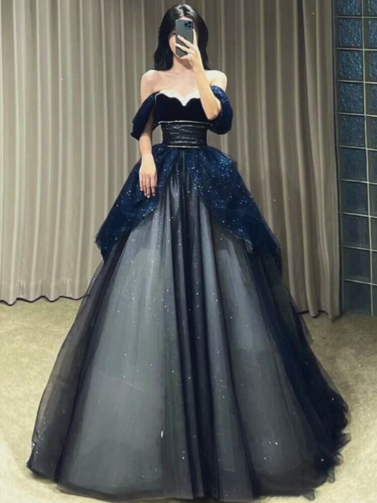 高級ウエディングドレス スパンコール付き 恋人 エンパイア ティアード オフショルダー チュール ブリンブリン 誕生日 ウェディング パーティー ドレス レッド 大人ガーリー スウィート キュート カジュアル | aliel