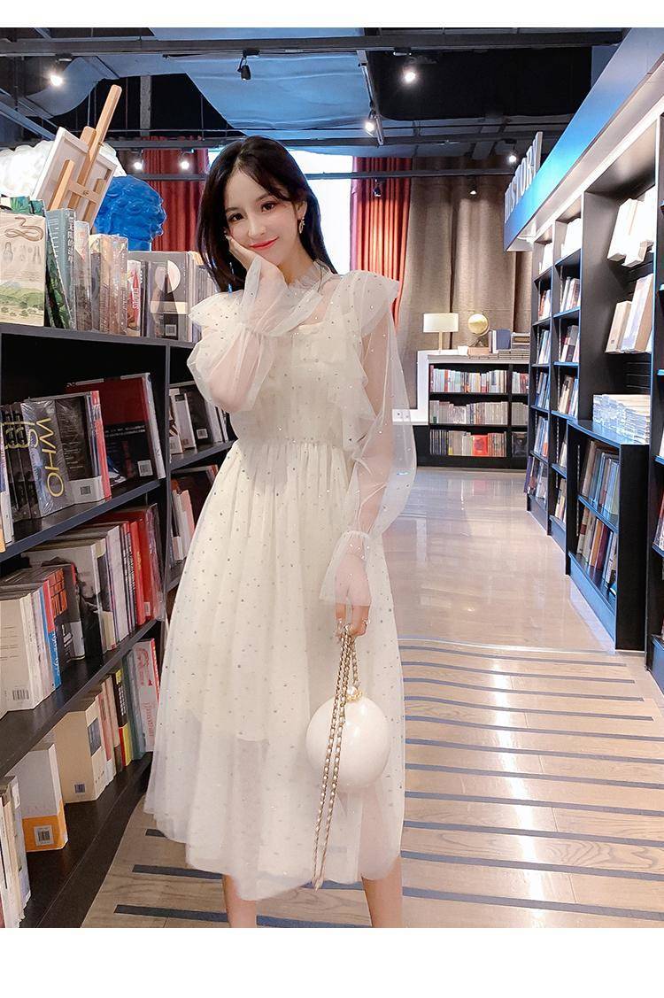 Bella 哲学春ロングランタンスリーブビーズワーク Pimk メッシュドレス甘い A ラインケバケバ光沢あるメッシュドレス 大人ガーリー スウィート キュート カジュアル スプリング 春物 Aライン | aliel