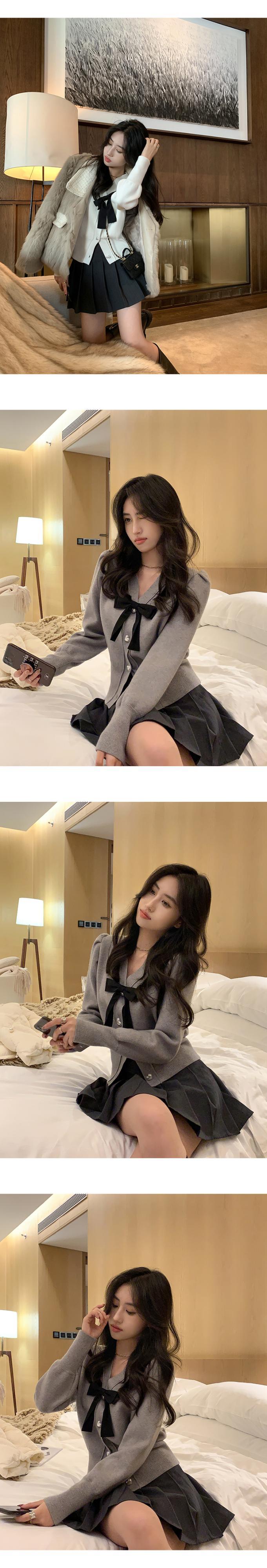 甘い弓カーディガンセーター ese 怠惰スタイルニットカーディガンルーズフード付きセーター秋長袖トップス ロング リボン 大人ガーリー スウィート キュート カジュアル オータム 秋物 | aliel