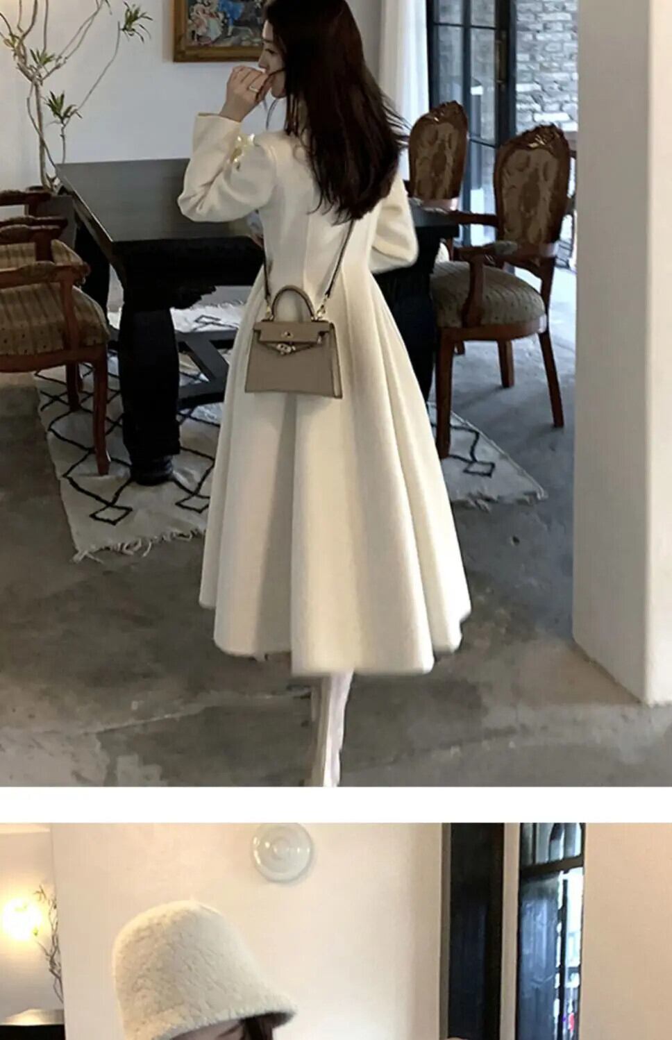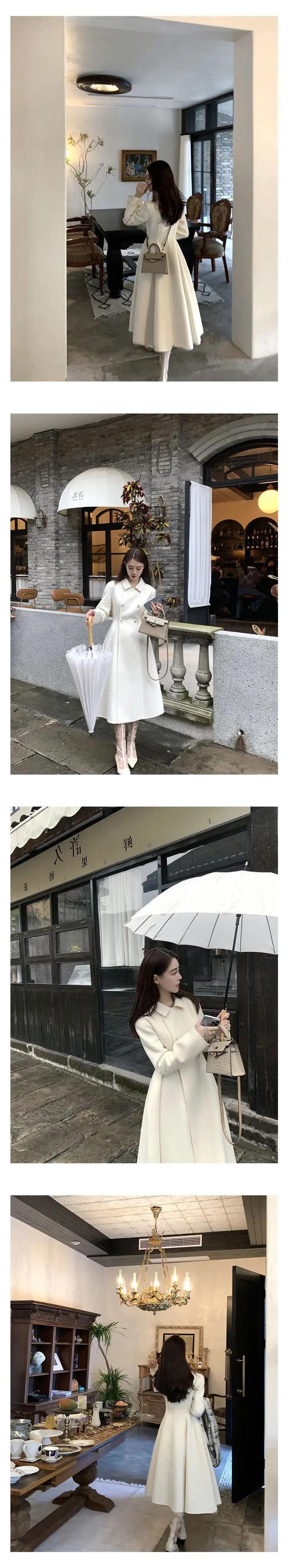 冬白スリムウールコートダブルブレスト A ライン厚く暖かいロングコートオフィスレディコート ホワイト ウィンター 冬物 Aライン 会社 学校 通勤や通学にも
