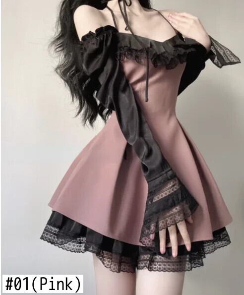バレエガールズブラックピンクドレスワンショルダーレースセクシースウィートスパイスaラインショートスカート2024春と夏 大人ガーリー キュート カジュアル スプリング 春物 サマー 夏物 | aliel