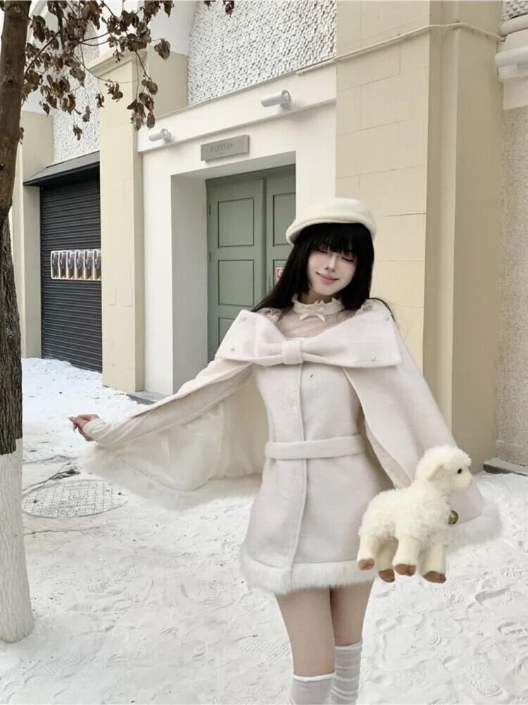 レディーススーツ ケープ リボン スイートジャケット ショートコート レース インナー ショートワンピース 2点セット 秋冬 大人ガーリー スウィート キュート カジュアル オータム 秋物 ウィンター 冬物 | aliel