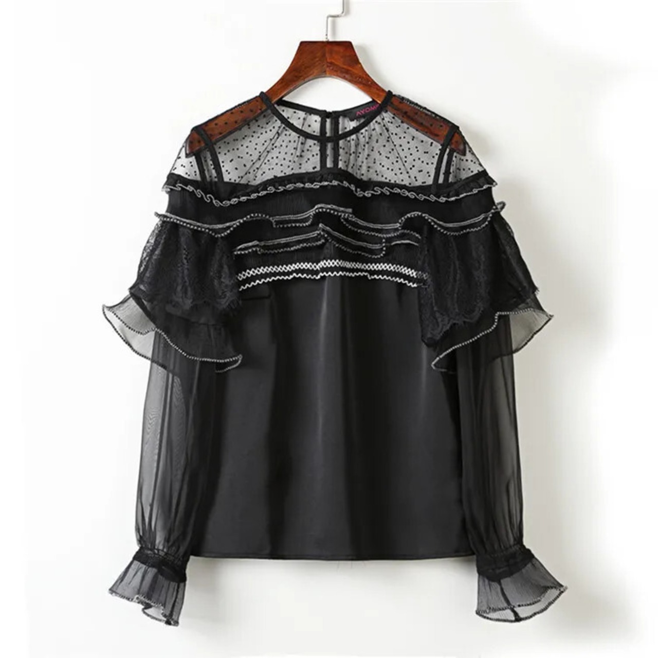 Bella Philosophy ブラウスシャツトップスオフィス sutumn ストリートガールズ甘いクロップレーストップ 大人ガーリー スウィート キュート カジュアル 会社 学校 通勤や通学にも