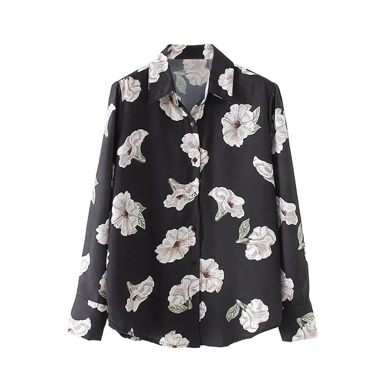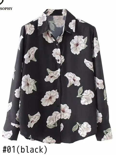 ワンダー秋シック花柄トップスブラウスラペルカラー長袖オフィスシャツ ロング オータム 秋物 会社 学校 通勤や通学にも
