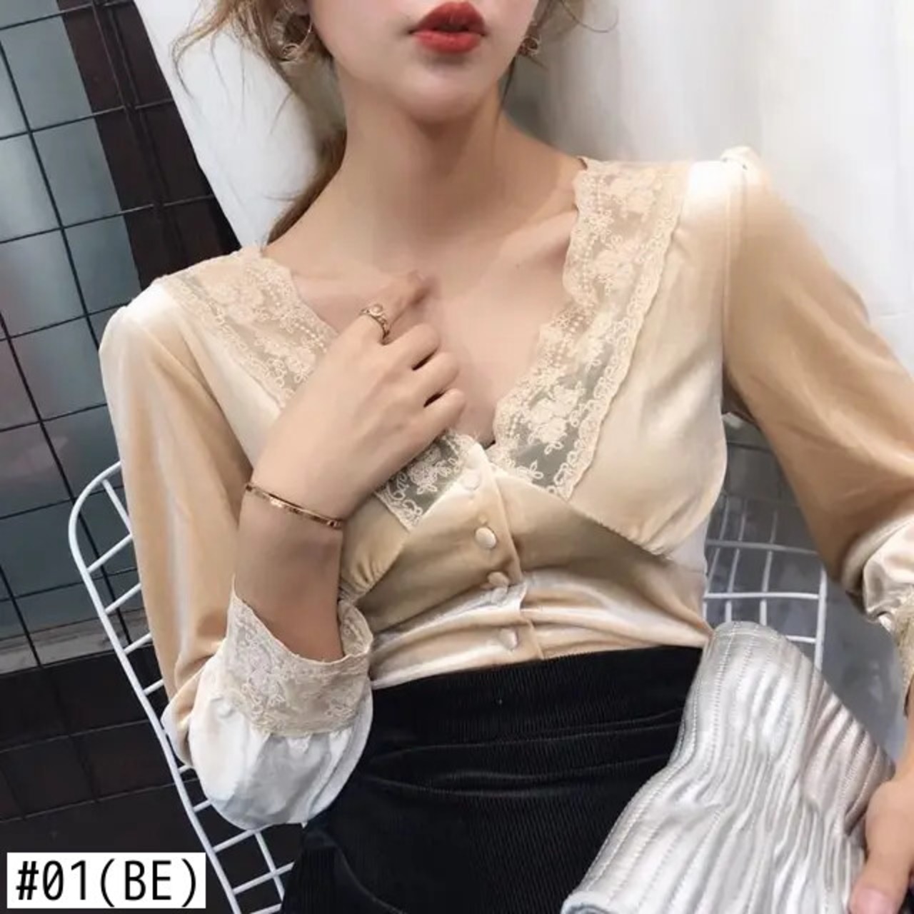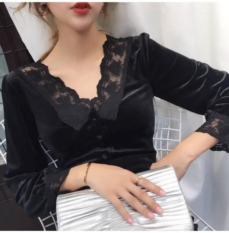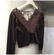 Bella Philosophy 長袖ベルベットブラウス春 V ネックレーストップスソリッドボタンシャツ ロング スプリング 春物 Vネック ソリッドカラー