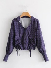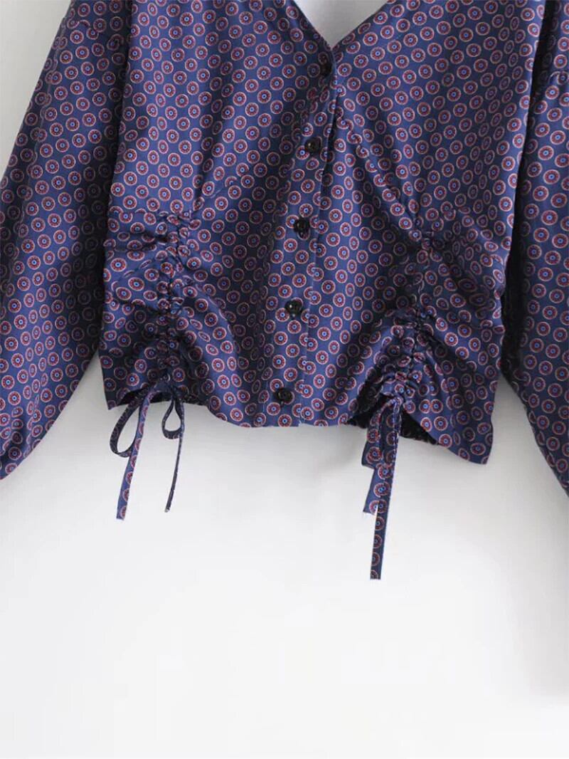 Bella Philosophy 春カジュアル水玉模様ベーシックシャツ v ネックフルスリーブレースアップブラウス巾着ファッションシャツ スプリング 春物 Vネック