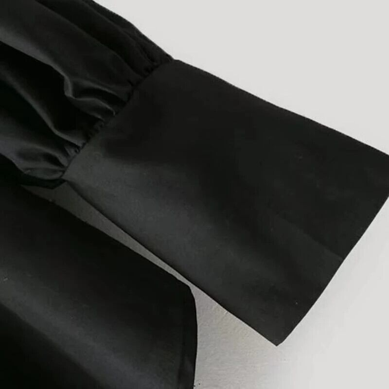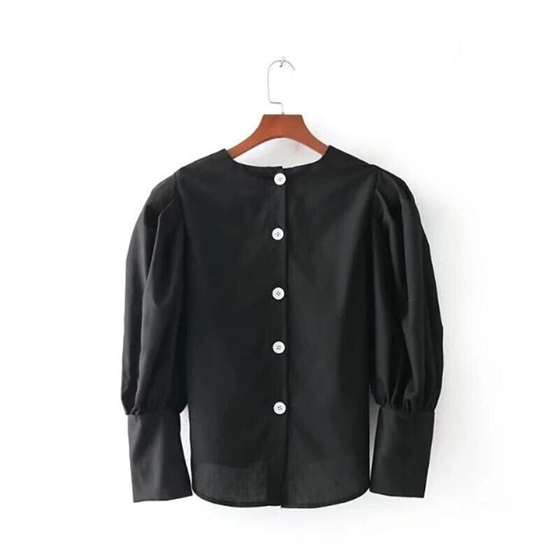 Bella Philosophy 春黒カジュアルシャツ長袖レディース O ネックブラウスボタンルーズファッションブラウス ロング ブラック スプリング 春物 Oネック ソリッドカラー
