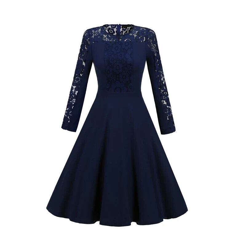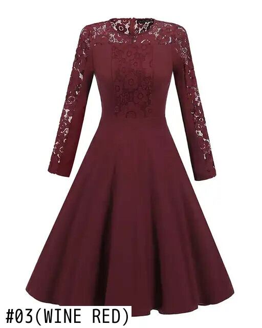 Bella Philosophy 冬ヴィンテージドレスパッチワークレースエンパイア A ラインドレス長袖ミッドふくらはぎ O ネックパーティードレス ロング ウィンター 冬物 Oネック Aライン ビンテージ | aliel