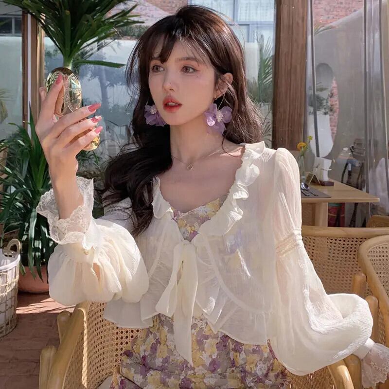 夏オープンステッチフリルルーズ夏フレアスリーブ BF 上着原宿学生入札通気性チュニック ラッフル かわいい サマー 夏物