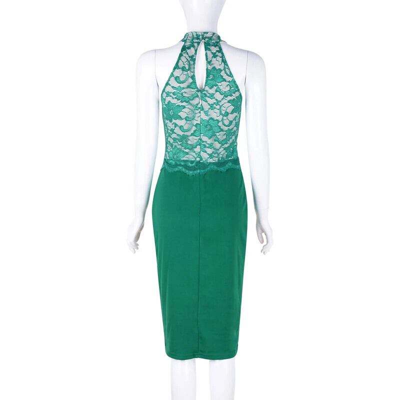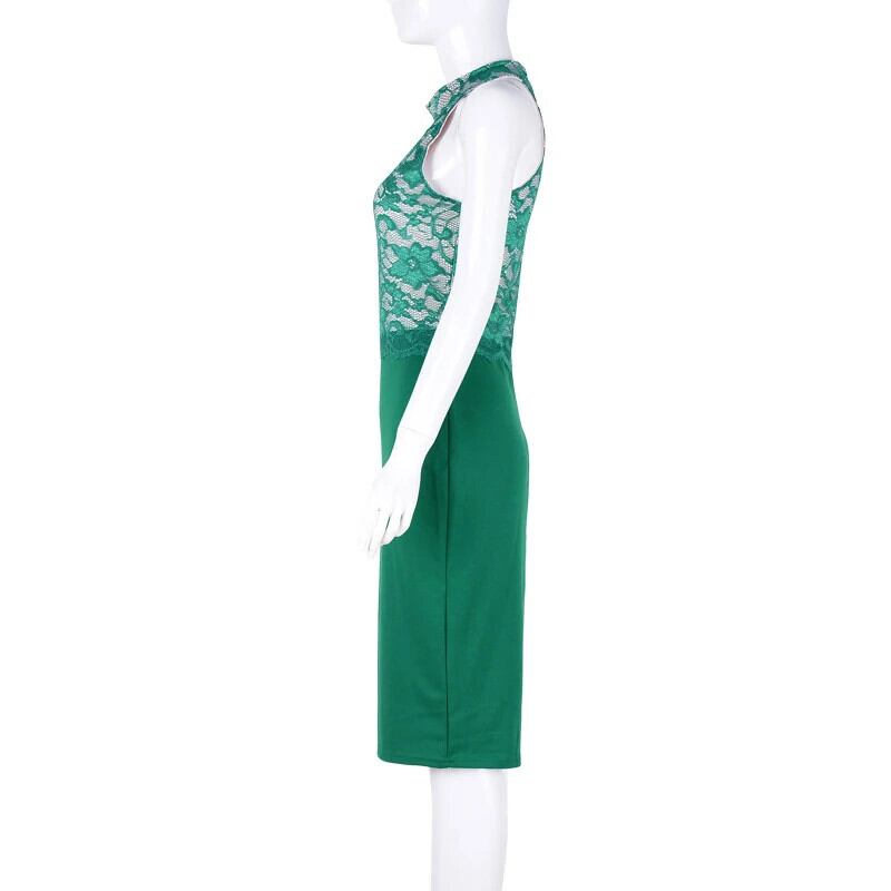 Bella Philosophy 春セクシースリム パッチワーク パッケージ ヒップ O ネック ノースリーブ ペンシル グリーン レース ボディコン ドレス スプリング 春物 Oネック | aliel